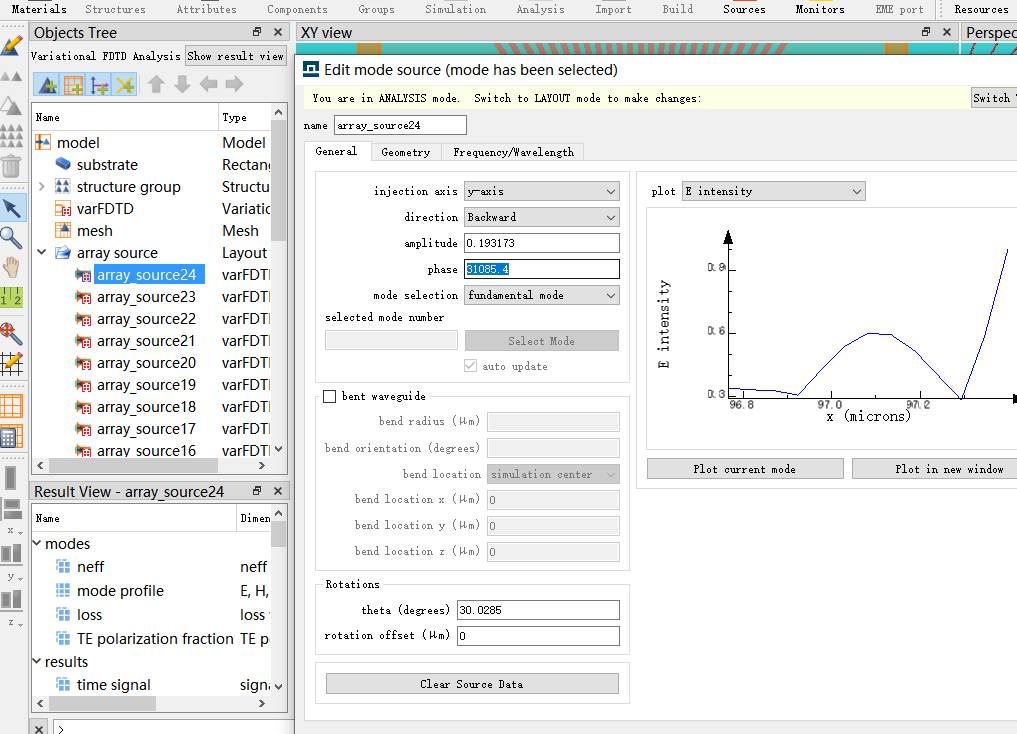 A2:你添加倾斜角度后看看模式光源是否垂直于波导就知道了。你可以选一个大角度的测试。你看看案例的情况。