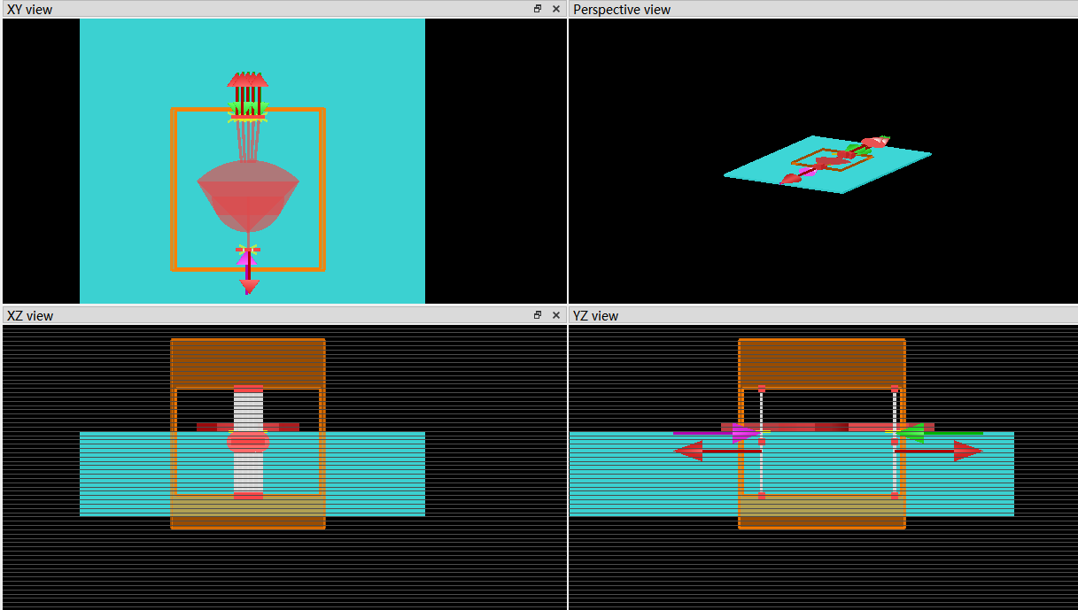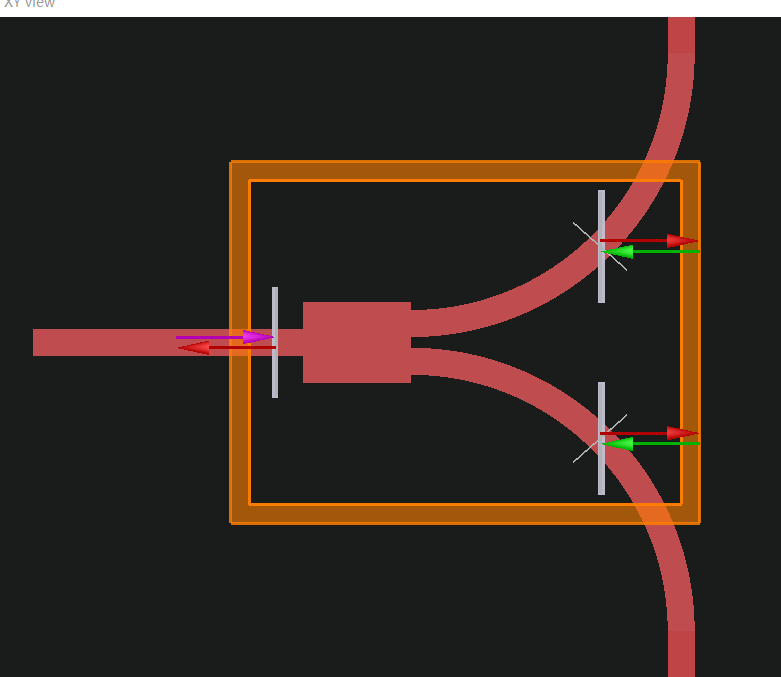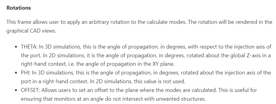 2.由于传输要经过数根倾斜的阵列波导,那上面的port也要有相应的倾斜角度。我设置的输入光源y轴注入,在port1、2上想改变port倾斜角度时,改变theta会产生一个xy平面与z轴的夹角,而不是我期望的xy平面以x为轴旋转的夹角(如图4案例所示)。看了官网说明后应该是改动phi?但我改动后并没有在四个视图上表现出来。只有y轴注入的光源,port上改变theta才会有我想要的xy平面倾斜角吗?