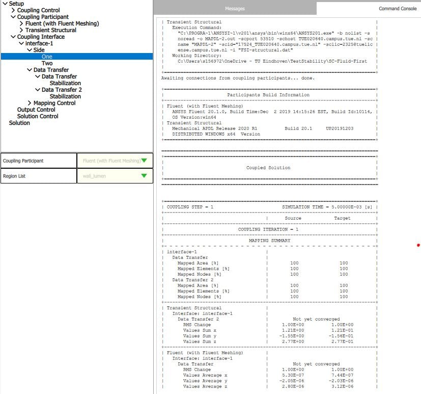 For my PhD project, I'm working on FSI models of abdominal aortic aneurysms using Ansys Fluent and Mechanical. I recently switched from using Ansys 2020 R1 instead of Ansys 19.2 to be able to use the quasi-Newton stabilization method, which is working very well! However, I'm facing another problem now.