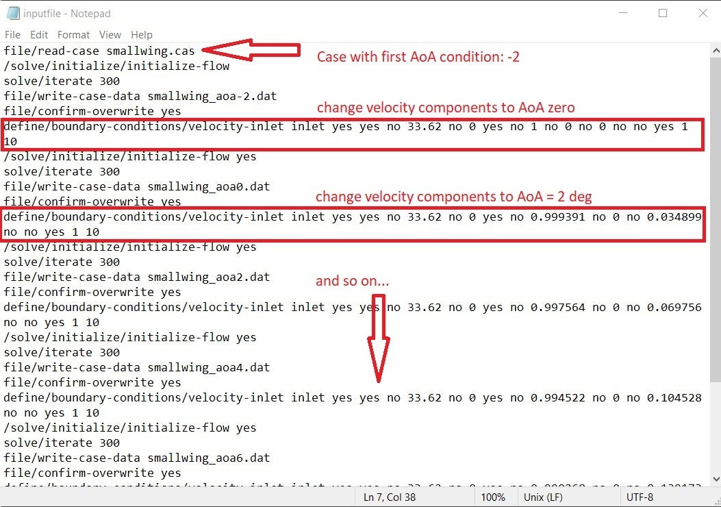 I am trying to run a batch job where I let the solution converge for some inlet velocity conditions and incrementally change the flow direction (by changing the velocity components). The goal is to get data for many angles of attack on a 3D aircraft wing.