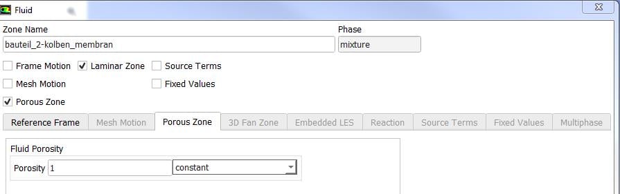 The definition of "porous zone" is always grayed out for each phase.
