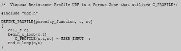 In the manuel, I found this UDF to define a viscous resistance profile in a porous zone.