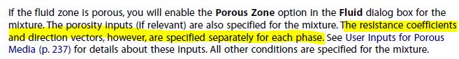 Forum ModeratorPorosity in the last post is the amount of "solid" in the fluid region. It's used for heat transfer and is not related to the resistance coefficients.Â