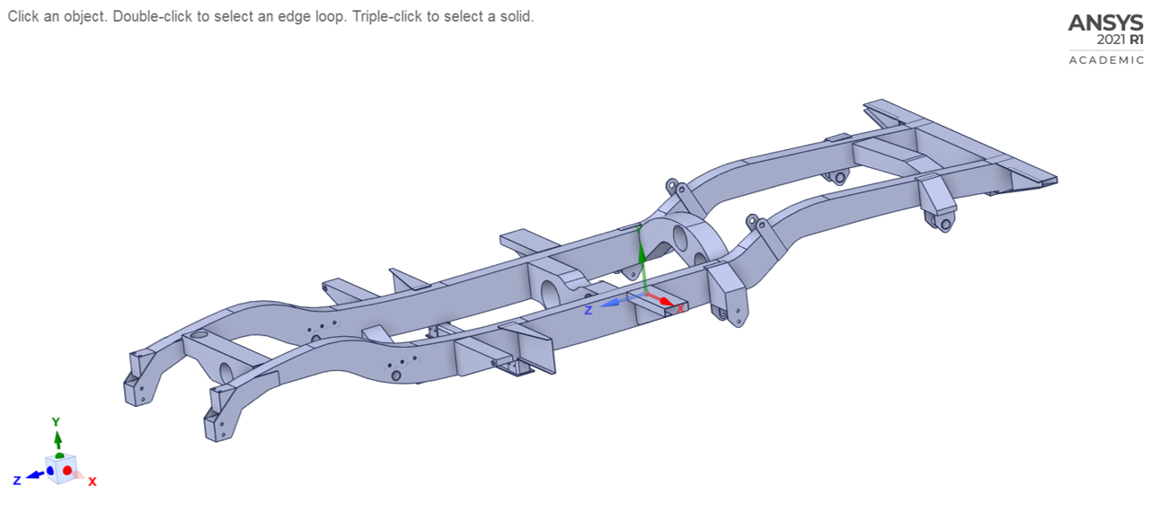 I have successfully imported the chassis to Ansys and played with the mesh etc. Depending on the mesh settings I get failures for "mesh quality" and "tetrahedron mesh failure". Some settings result in a meshed chassis that fails during simulation.
