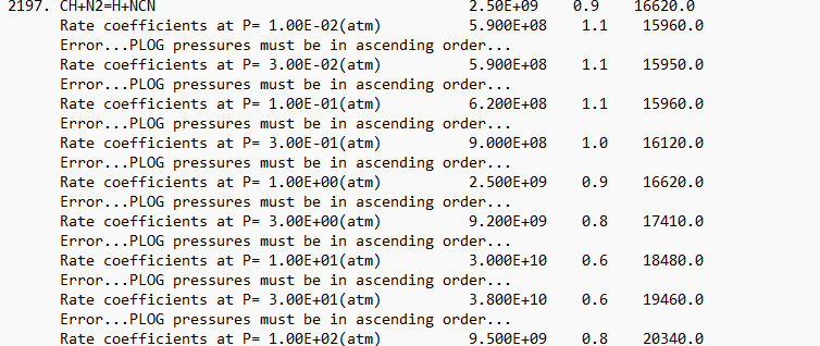 Thank you for help. I was able to remove the error. However, I am getting another error. Its says 'Error...PLOG pressures must be in ascending order...'. However, PLOG pressures are already in ascending order. I have insterted the screenshot of the error. Could you please help me how to remove this error. I would be really thankul to you.
