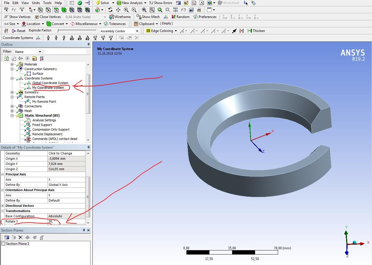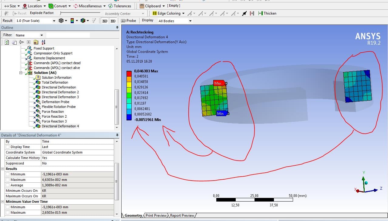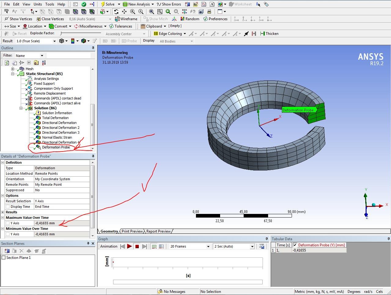 i am a Simulation Beginner and i simulate a Piston Ring with Ansys Workbench Mechanical and try to find the Deformation in y-axis as well as the Rotation based to the Center of gravity.