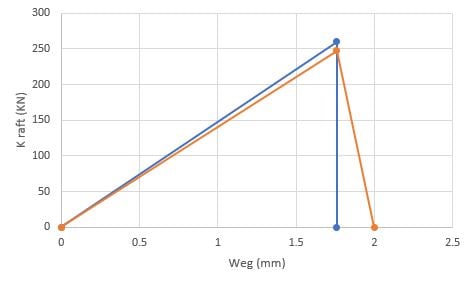 The picture above ist the Force-Sliding Distance Grapf as a Result. As you can see at the 1,76mm Sliding Distance i become the maximum Force with a bit error but actual problem is after damage i cant make the stiffness zero. So i cant do a line to Zero Force like the Experimental Data.