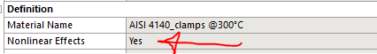 - In the 3rd step change the material properties to the real plastic ones and not the very high ones used in step 1. This is done via command snippet (placed in the Solution tree) that is only active in step 3 (set step selection mode to number and enter below it step number 3). The nonlinear material shown below needs to be of the same sort of plasticity as in the material used in step 1 (so the one defined in engineering data)!
