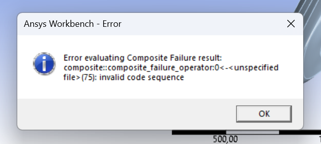 SubscriberHello! I´ve been having an issue every time I run a composite failure tool solution. Basically, I´m trying to run a total deformation solution and a composite failure tool solution, the first one is doing ok, I click solve and the software gives me coherent results, but when i try to solve the second one this error message appears saying "Error evaluating Composite Failure result:
