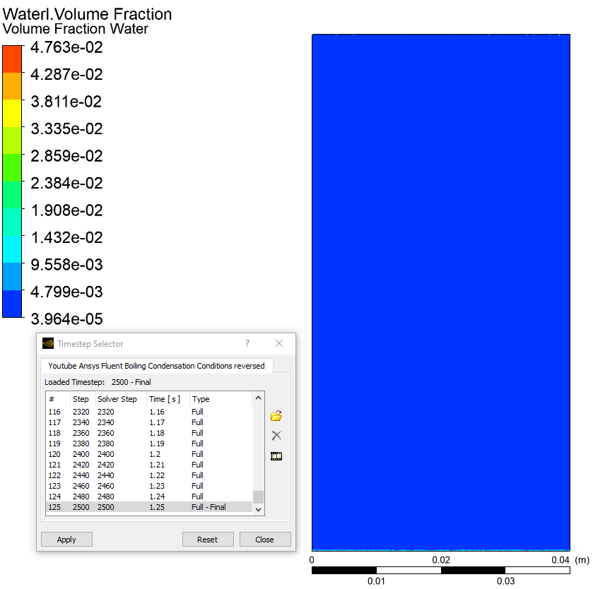 As you can see from the above image I'm getting very minor levels of water condensate forming at the edges however surprisingly more is present at the bottom edge (boiler boundary condition) than the top edge (condenser boundary condition)