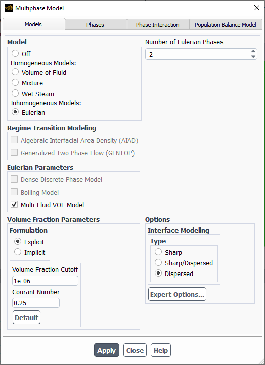 I also have not enabled the Eulerian film modelling for the model shown as that would be part of my model development if any condensation of vapor occured.