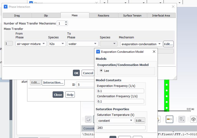 Ansys Employeethe phase change model is wrong. You require partial pressure or concentration driven or you adjust the saturation temperature so that it matches rh equal to 100% -