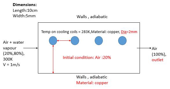 Ansys EmployeeI mean the phase change: either you code your phase change, or you adjust temperature to match RH = 100 in each cell (UDF) or use species mass transfer apporach. REad the manual about that.