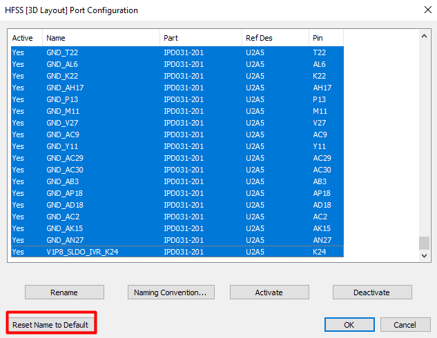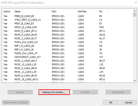 Ansys Employee当从Siwave导出模型到HFSS时,软件会基于器件Solderball,以及net属性的设置,自动添加coax端口,如果想修改这些端口的命名规则,可以在Siwave Advanced菜单下,点击HFSS[3D Layout]Ports,如下图所示。