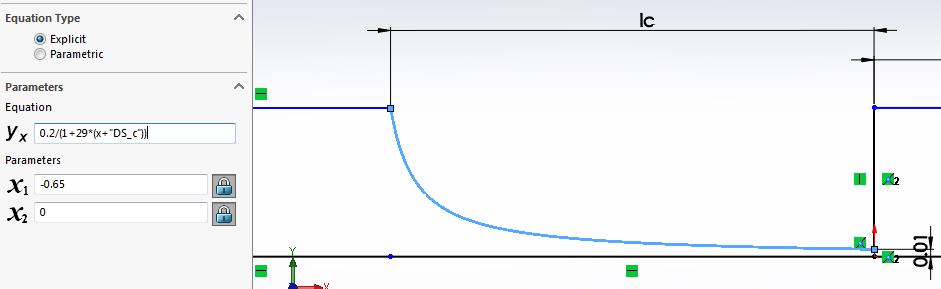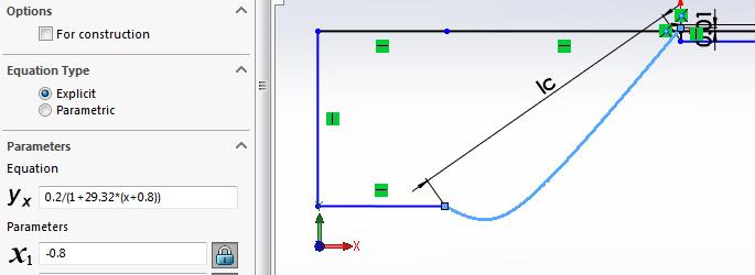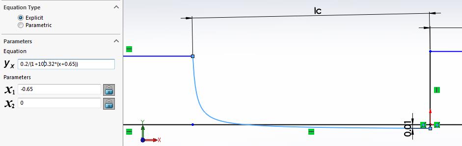 There is an Ic dimension of 0.65 and there is a value of 0.65 in the curve equation and there is a value of -0.65 in the X1 field. Do they all change together? If I type in 0.8 for all, the shape of the sketch is shown below, is this what you want? I don't think so.