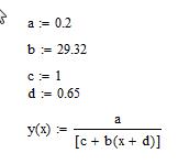 y=0.2/(1+"a"*(x+"c") with x1=-0.65 (-"c" wouldn't work) and x2=0