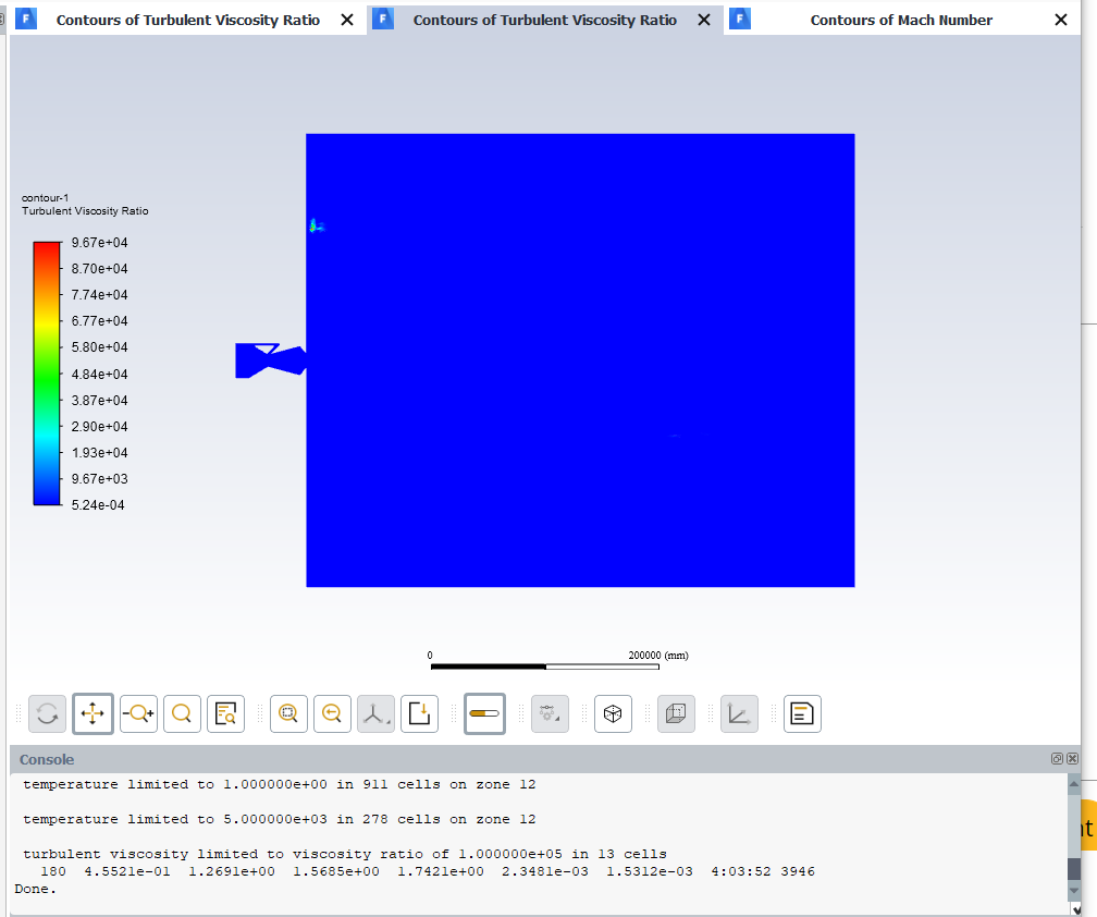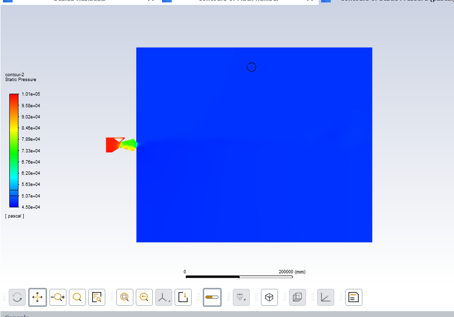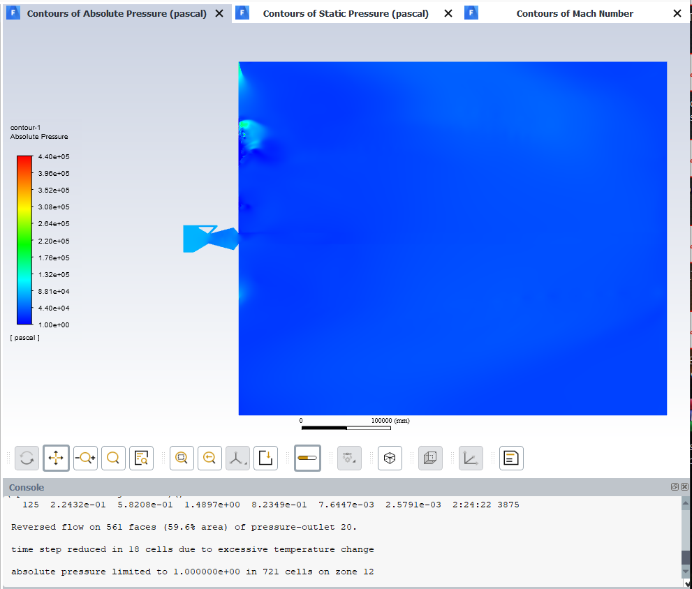 Forum ModeratorFMG gives a reasonable first guess for the solution but as the flow was nearly behaving it'll not do much. Can you post some images of the mesh as removing the sudden jump in cell size downstream of the nozzle will do more to help: the effect is very obvious in the second Mach Number plot. n -