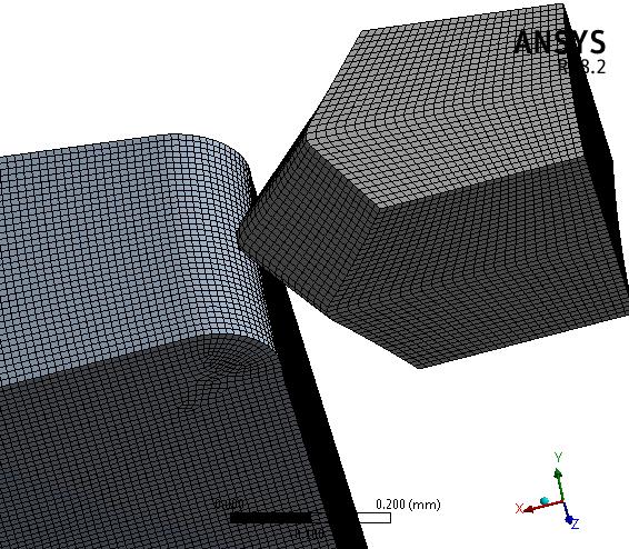 I am trying to do analysis from the first post,  the analysis must be with solid elements, the analysis is inserting of the pin into the hole. I type to do with more accurately, with less penetration between two parts or the smallest value with is possible. The diameter of pin  is 0,1 mm the bigger then the diameter of hole. I need to do with solid elements not with shell.
