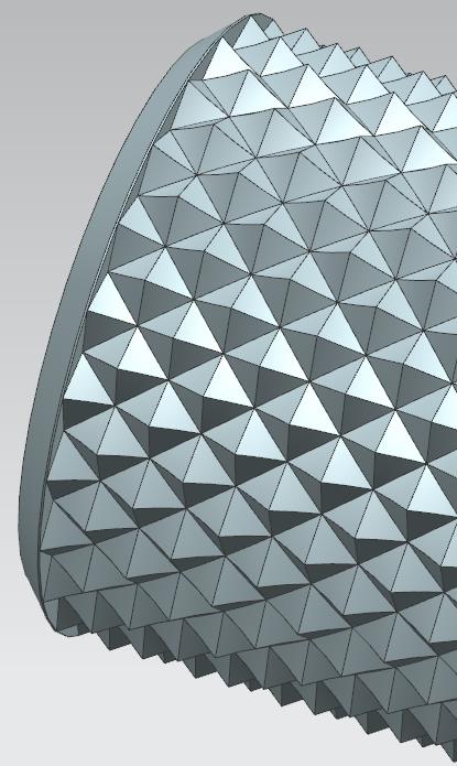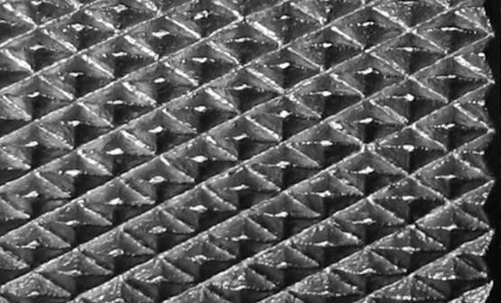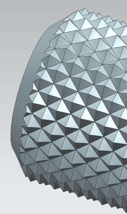 But if you look at a close up of knurled metal parts, they don't have sharp tips. I recommend you add a blend to the tip of each pyramid.