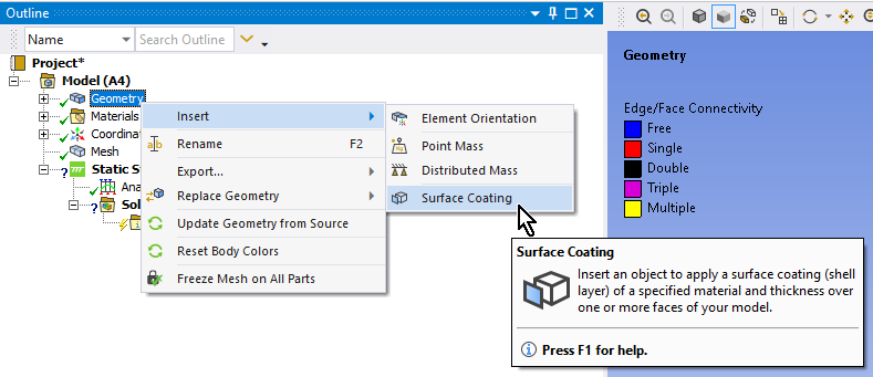 SubscriberI am using the latest version of ANSYS 2021 R2. The surface coating feature was only released in the last year or two. You won't see that on older versions.