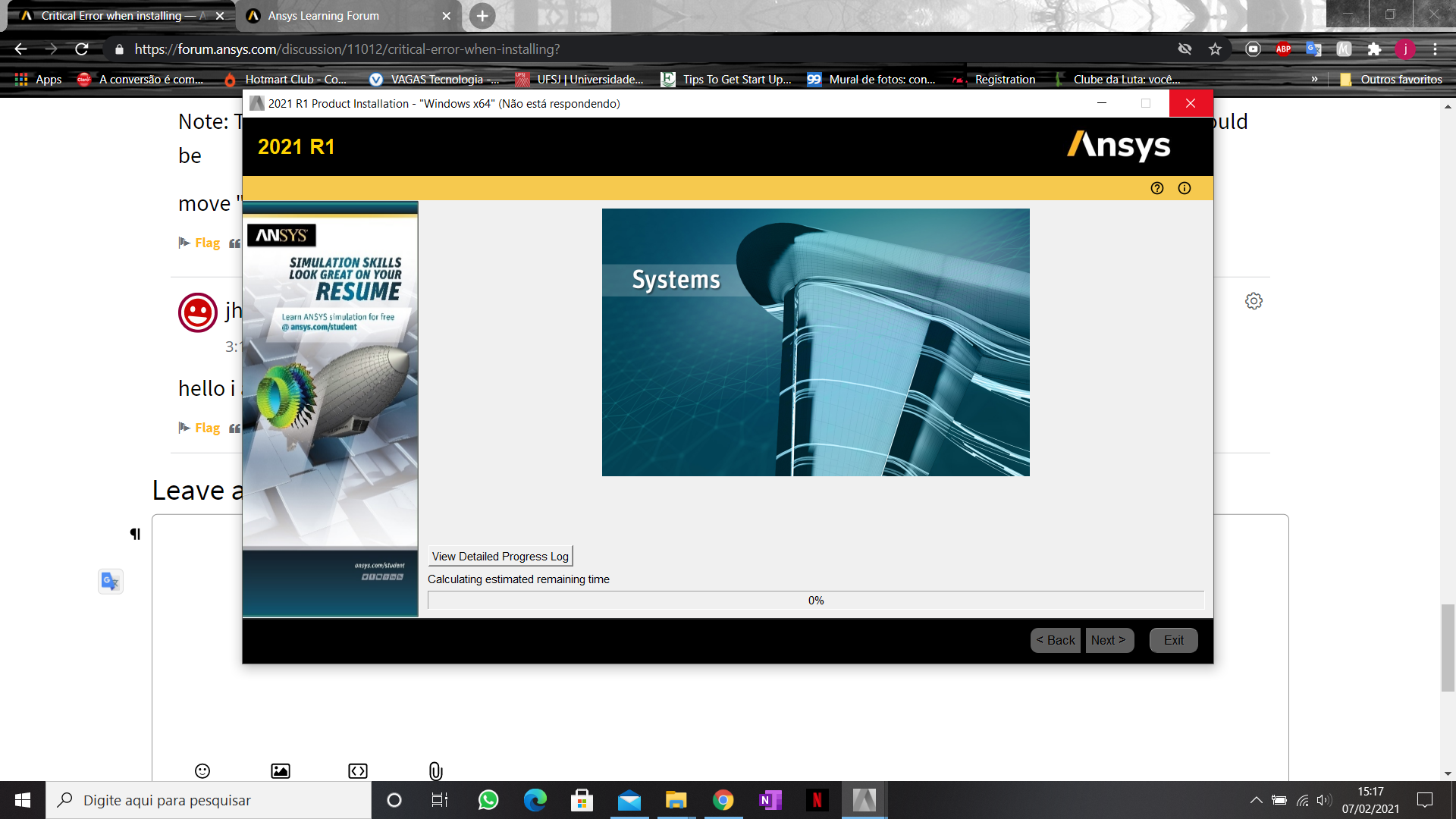 Subscriberhello i am having same problem with installation.I am trying to install 2021r1