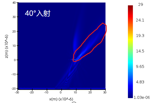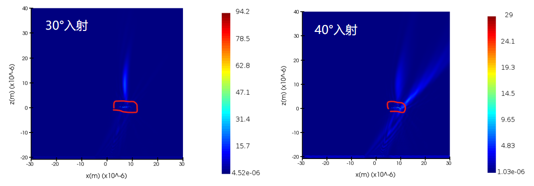 (2)在40°光源入射以及更大的角度的情况下出现了较强的发散,我的仿真区域已经很大了,请问有什么解决办法。