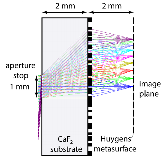 A1: 我们需要理解焦点是怎么形成的:不同方向的光经过透镜后汇聚形成的。如果结构设计有一些问题,或者有高级衍射,哪里光强最强很难说。最好是检查单元结构仿真结果有没有高级衍射,另外形成超透镜的结构与原来的周期单元结构并不完全一致,所以也可能产生高级衍射。简单的方法是看看超透镜仿真结果远场,看看远场光斑情况。