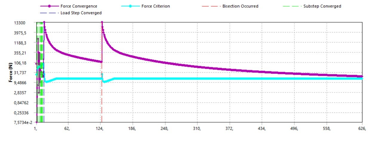 I tried to improve the mesh and increase substeps and steps, but it doesn't solve much. Thank you all. SCRIPT:Âtotal_steps=20subst_int=10subst_max=18subst_min=10neqit, 500 !numero massimo di iterazioni di default è impostato su 15Â*do,i,1,total_steps /gopr time_step=i/total_steps time,time_step nsubst,subst_int,subst_max,subst_min outres,all,all esel,all solve finish /post1  set,last  Â!  esel,s,live!  *get,live_count%i%,elem,0,count!  esel,inve,live!  *get,dead_count%i%,elem,0,count      Â  esel,all  etable,stress,s,eqv  esel,s,etab,stress,ARG1!  *get,stress_ecount%i%,elem,0,count  cm,kill_stress%i%,elem  cmsel,s,kill_stress%i%,elem!  *get,stress_ecount%i%,elem,0,count  Â  allsel  cmwrite,kill_list,cm  parsav,all finish Â /solu  antype,,restart  parres!  *status Â   /input,kill_list,cm  *do,k,1,i   ekill,kill_stress%k%   estif, 0.9  Â!   *status  *enddo       Â*enddofinishÂÂ