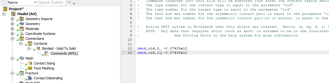 However, I also want to define the tangential cohesive stiffness. How to define it in the Workbench? Any APDL command?