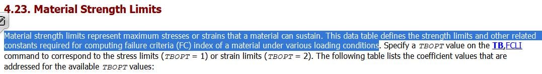 I want to enter the numbers for the failure criteria for a orthotropic material in the ansys apdl.(stress and strain limits)