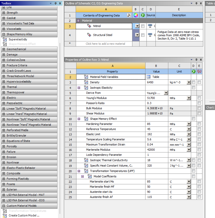 I need to define specific transformation temperatures for the martensite and austenite phase transformations of nitinol. When I use the custom material model to implement martensite start temperature, martensite finish temperature, austenite start temperature, and austenite finish temperature, then run my test model I get two errors. Is there something I need to do specifically to user-define parameters to ensure Ansys simulates the correct physics?
