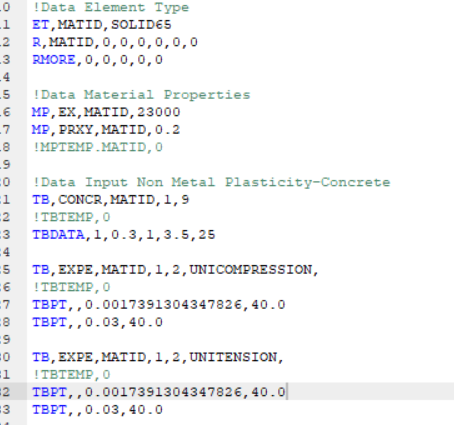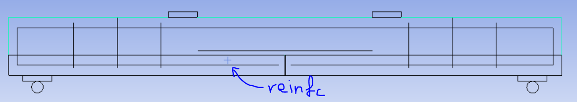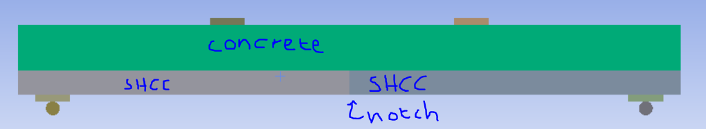 I am new to using MAPDL, I created a model of a beam with 2 layers. The top layer is concrete and the bottom layer is SHCC. The beam is loaded under a 4 point bending configuration. At the moment I am using solid65 and link180 to model the concrete and reinforcement.