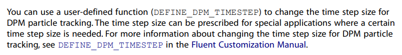 SubscriberYes but the udf define_dpm_timestep is for particle integration step. This is because fluent udf manual uses it like that as mentioned in my last message. Am i correct?