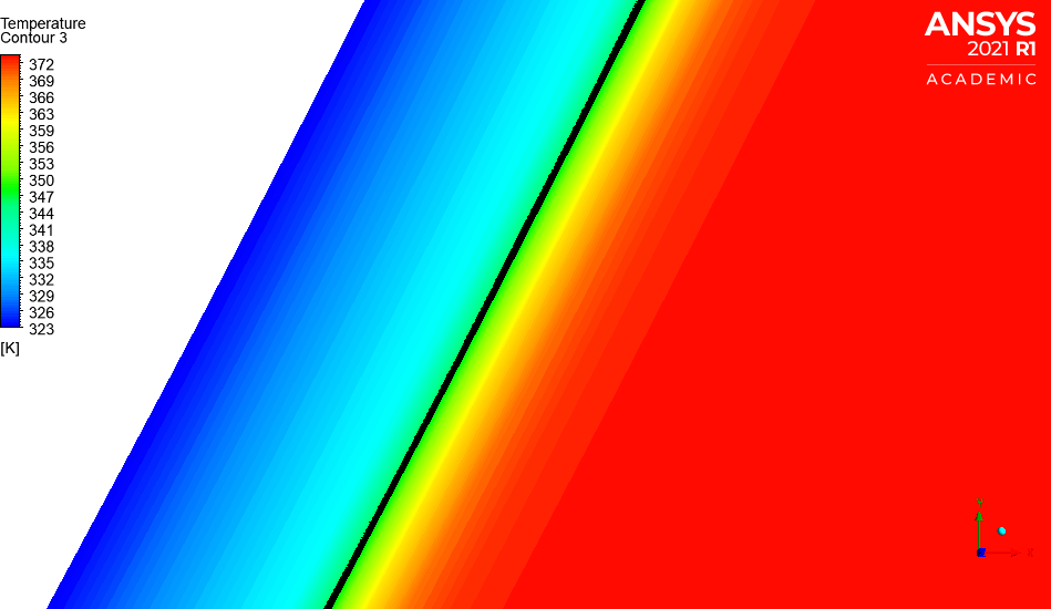 When using the compressive interface tracking method with a slope limiter value of 1, I've manage to validate the film thickness against the Nusselt theory. However my heat transfer coefficient/heat flux values are completly wrong. I obtain a value of around 2500 W/m2K when it should be 9000 W/m2K. I've even set the reference temperature to be equal to saturation. The same can be said for the temperature and velocity profiles. Also, the temperature at the interface does not equal saturation as it is meant to. This can be seen on the picture