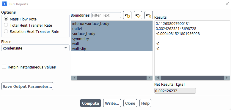Forum ModeratorWith condensation I'd expect flow into the domain as the vapour condenses and temperature drops.Â