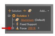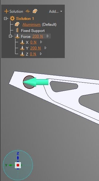 If I change the components such that force is now applied in Y direction, the arrow changes direction appropriately.