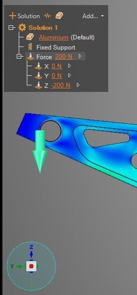 In the picture below, force is applied in z direction and the arrow direction reflects the same