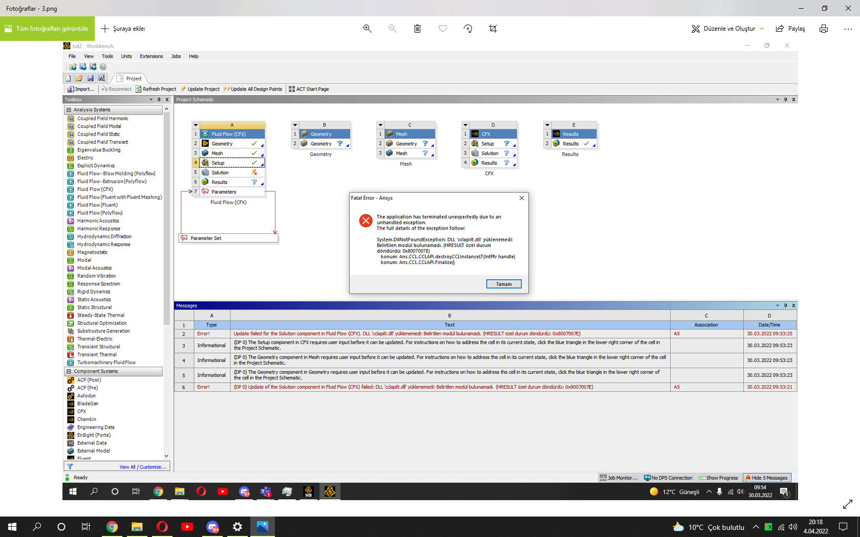SubscriberHello I'm having the same problem! I'm using 'Ansys Student 2021 R1' and the full error message was: "System.DllNotFoundException: N├úo ├® poss├¡vel carregar a DLL 'cclapilt.dll': N├úo foi poss├¡vel encontrar o m├│dulo especificado. (Exce├º├úo de HRESULT: 0x8007007E)". Meaning: It's not possible to load the DDL 'cclapilt.dll': It was not possible to find the specified module. (HRESULT: 0x8007007E exception).