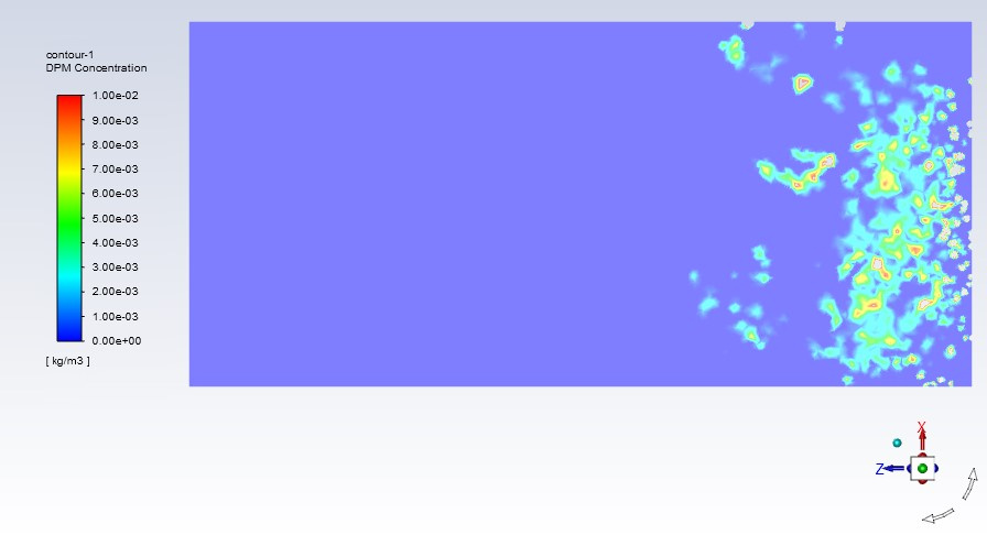 Forum ModeratorThe holes in Fig 2 are regions where you've clipped the display range: if you turn off clip to range you'll see those areas in red: they're regions with a value higher than 1e-2 kg/m3. nFig 1 is displaying the concentration, it's just the bulk of your region has a concentration under 1.7e-2 kg/m3 with the revised scale in Fig 2 you can see it.Viewing 3 reply threads- The topic ‘DPM Concentration on Auto Range or Clip to Range in Contours in Fluent’ is closed to new replies.