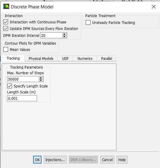 Forum ModeratorOn each DPM update Fluent re-calculates the particle trajectory and hence source terms (how much the particle alters the flow). If the update is very frequent the solution may never converge, and may use a lot of cpu resource, on the other hand the solver is using the correct DPM data. If the interval is very long, you'll see spikes, use less cpu but risk using less up to date data. Both high and low intervals are valid depending on how much of a change you see in the particle tracks and how much cpu you have. Default is 10, and 10-50 is a common range, I often use the default. n -