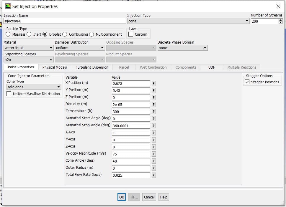 Forum ModeratorCan you post the injection set up and similarly the inlet condition panel? n -