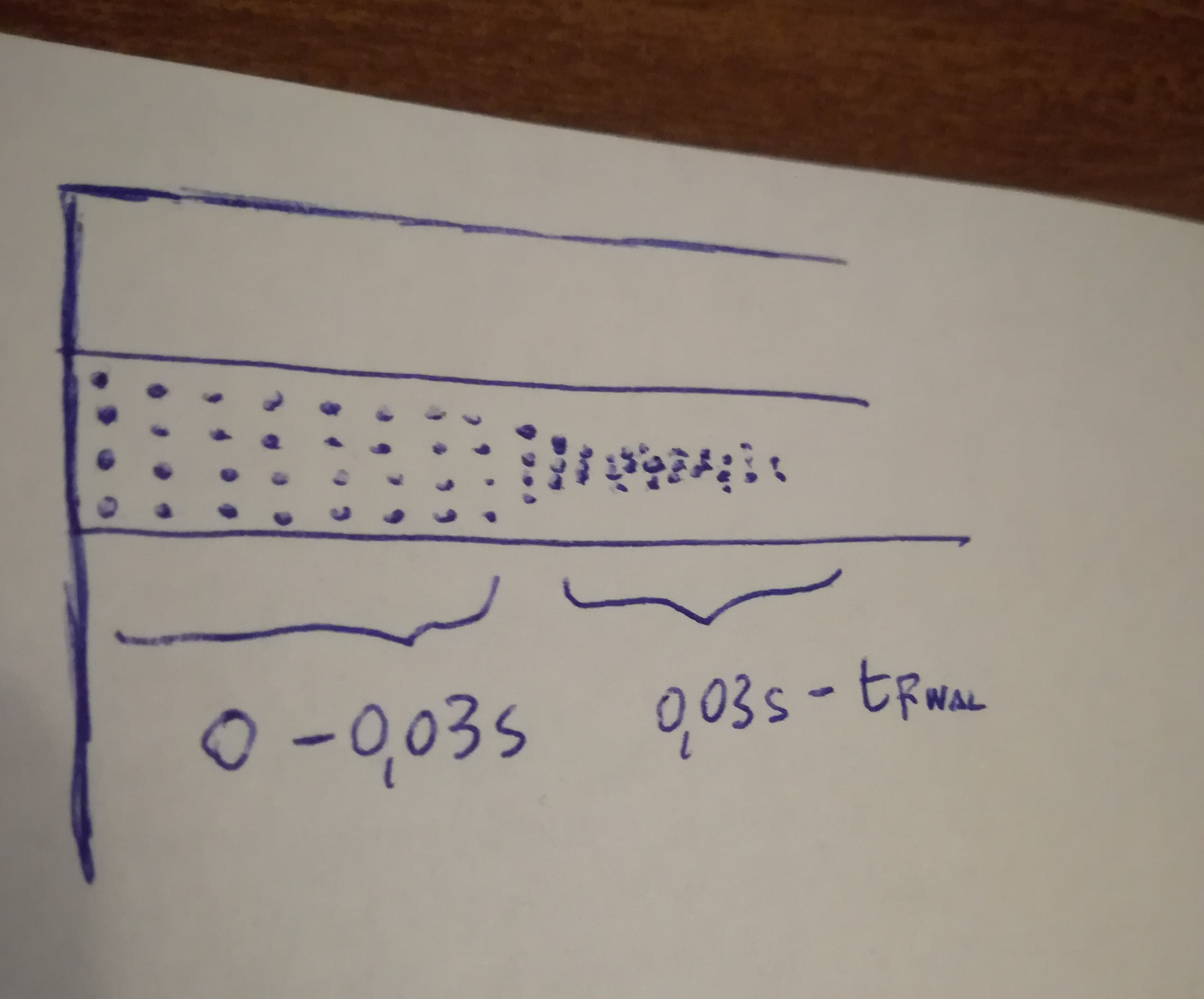 After 0.03 s particles should concentrate in the center, but the trajectories before 0.03 s should remain straight as in the first DPM image that I sent. Maybe I'm confused concerning dpm tracking or representation: I inject 10 particles (parcels), one per cell (I have 10 cells on the inlet), so the remaining that are present in the DPM's images that I post are not physical particles but they only represent the trajectory, am I alright?n