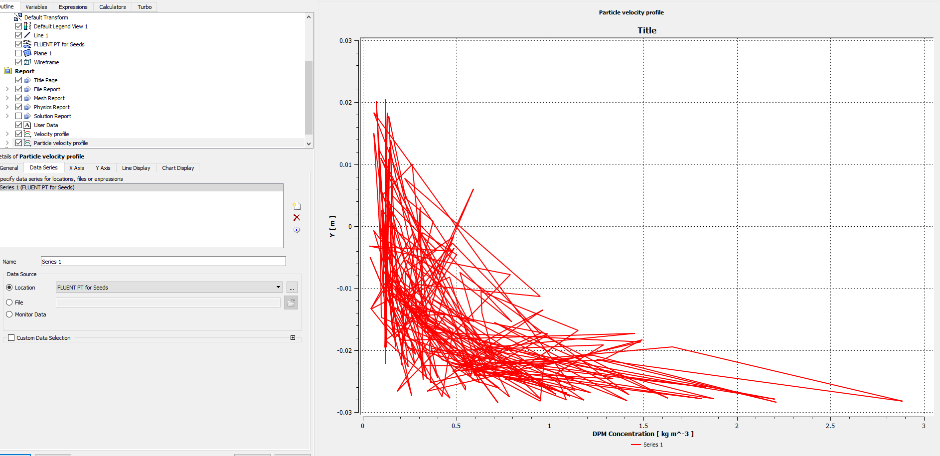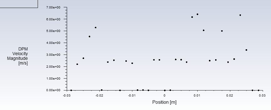 Forum ModeratorOK, you don't have a particle velocity profile as such, you have point data as a particle (stream) passes through a plane. However, if you turn on the Contour plot option Fluent will average some of the DPM values into the cells. Depending on how many particle steams you have this may produce a "spotty" contour, post what you see for comment.Â