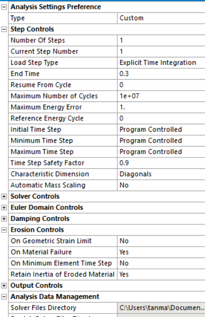 SubscriberThank you for your patience and assistance you've been providing me. I set the erosion controls to erode on material failure. I agree that the Young's modulus value that I used seemed extremely low. I calculated an estimate value based on some material properties I had for my foam: