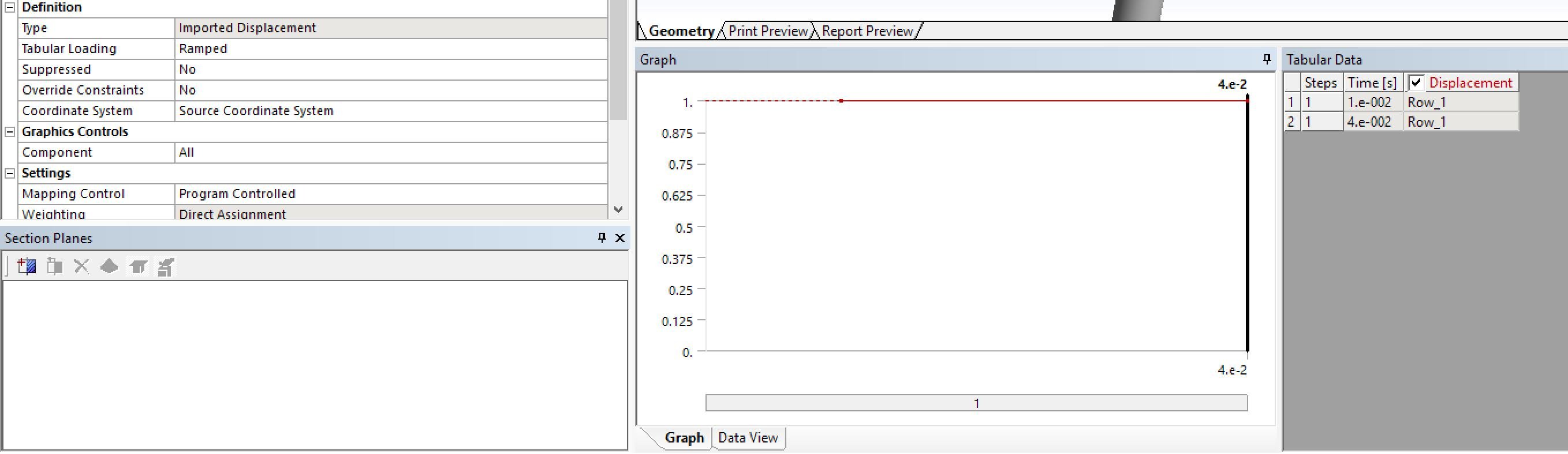 SubscriberAccording to my excel file, the maximum displacement is 0.995mm. As shown in the above posts, in mechanical I chose "ramped" for tabular loading. I was hoping this would apply the load over time at a slower rate.