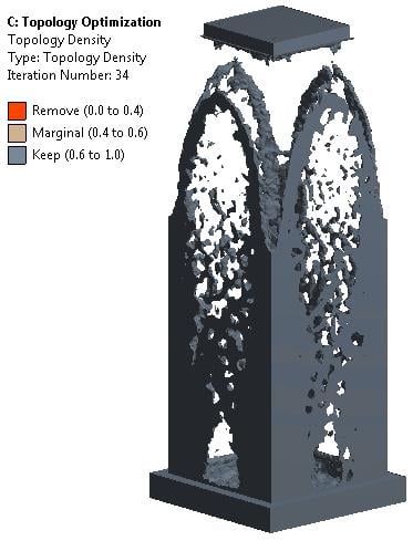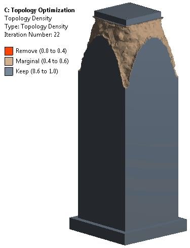 SubscriberI ran that model, and it converged. If I turn down the retained mass to 12%, the need for a minimum manufacturing constraint on member size is apparent. That will be added to the next run.