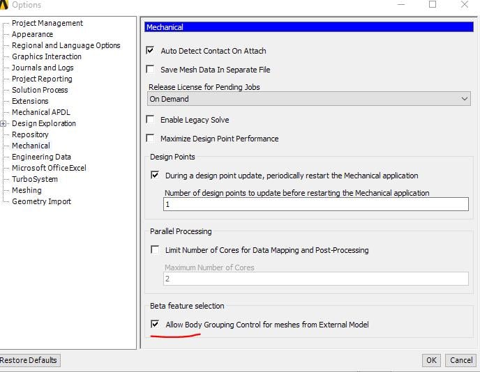 2. Check the box --> "Allow Body grouping control for meshes From External Model"