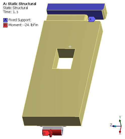 At the top of the part where the fingers would wrap around the end, hold two faces Fixed, and apply the Moment on the Hinge.