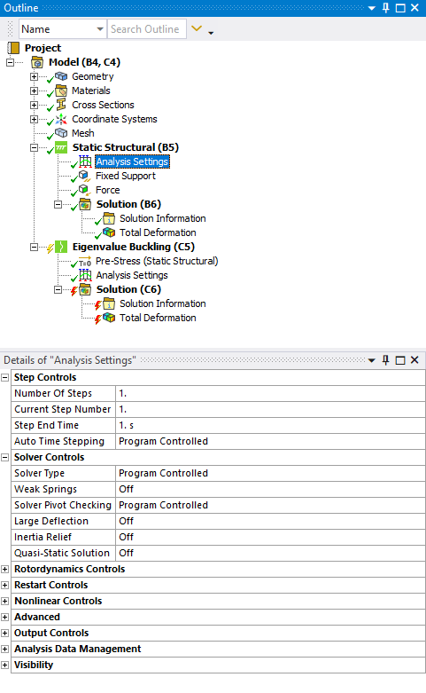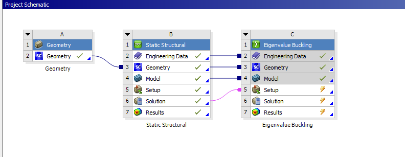 SubscriberPlease show an image of the Workbench. Do you have a link from the Solution cell of the Static Structural to the Setup cell of the Buckling system?