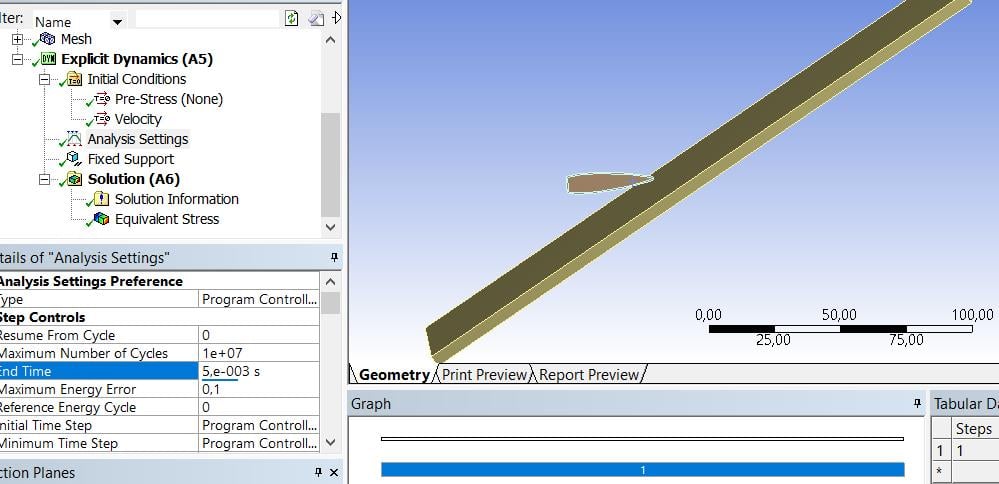 I'm trying to make a bullet impact analysis. However, the program gives the results in the middle of the analysis. I'm increasing the 'End Time' step by step. End time was 5e-4s and now 5e-3s. But bullet doesn't go anymore or bounce from the target. It must go further. What's the problem with that. Any help is appreciated. Thanks in advance.Â
